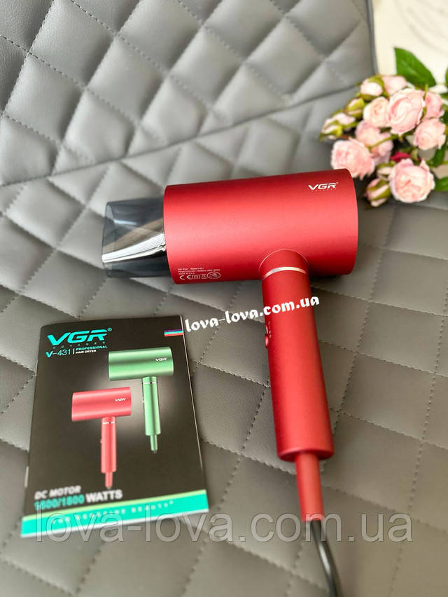 Професійний фен VGR V-431 обладнаний мотором потужністю 1600-1800 Вт, завдяки чому дає змогу якісно та швидко просушити волосся. Дві швидкості роботи пристрою дають змогу вибрати оптимальний режим для укладання. Спеціальна насадка-концентратор, яка постачається з пристроєм, максимально ефективно спрямовує повітряні потоки для створення укладки будь-якого типу. Щоб зафіксувати отриману зачіску, досить використовувати режим подавання холодного повітря.