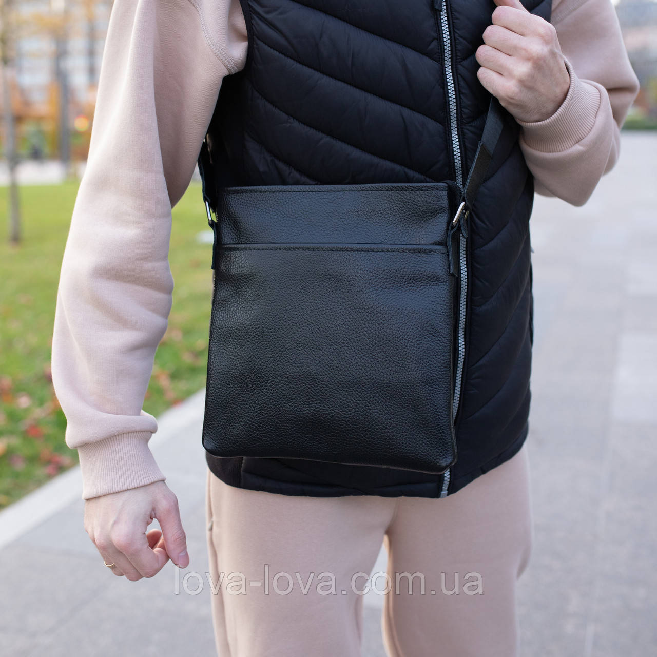 Ця наплічна сумка для чоловіків виготовлена з високоякісної 100% натуральної шкіри. Стильна та практична, вона має відділення з достатнім простором для вашого гаманця, паспорта, смартфона, картхолдера тощо. Ця чорна сумка замінить вам клатч або барсетку. З цією шкіряною сумкою-месенджером усі ваші найближчі речі завжди будуть поруч.